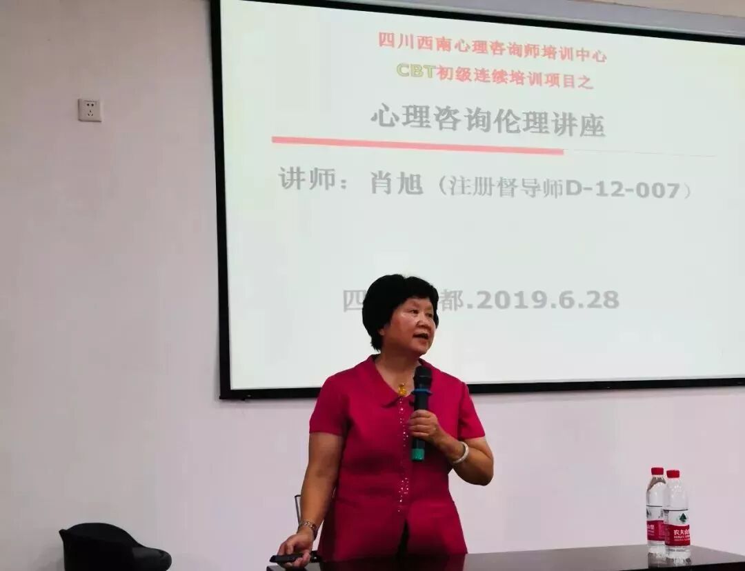 下午15点30分,特别邀请中国心理学会临床心理注册督导师肖旭教授为学员进行心理咨询和心理治疗伦理的培训,肖旭教授强调咨询师应牢记十字伦理总则——善行、责任、诚信、公正、尊重,同时应该做到把来访者获益放到****位。课堂教学过程中,肖旭教授也积极为学员答疑解惑,获得学员一致好评。