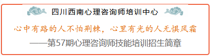 四川西南心理咨询师培训中心第五十七期心理咨询师技能培训班开始招生!为您提供系统专业的心理学知识和技能培训,愿我们永葆对生活的热爱,也不乏对抗风雨的勇气和智慧!